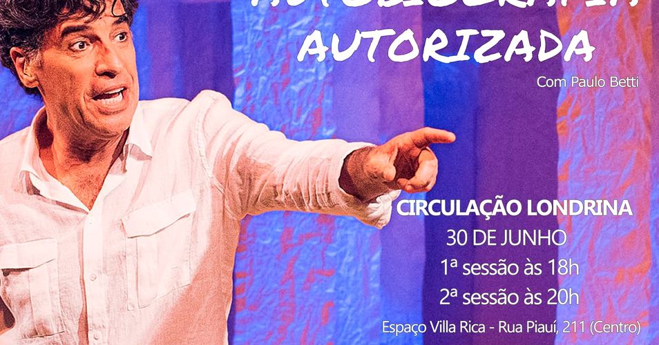 "Autobiografia Autorizada", um monólogo de Paulo Betti, dirigido por Juliana Betti e Rafael Ponzi, será apresentado gratuitamente na (o) Espaço Villa Rica, no dia 30 de junho às 18 e às 20h em Londrina. O espetáculo, que marcou a comemoração dos 40 anos de carreira de Paulo em 2015, foi construído pelo próprio artista, que se inspirou nos textos escritos em grandes blocos durante a adolescência, onde também fazia colagens de fatos da época, e também nos artigos semanais que escreveu por quase trinta anos para o jornal da cidade, onde foi criado.